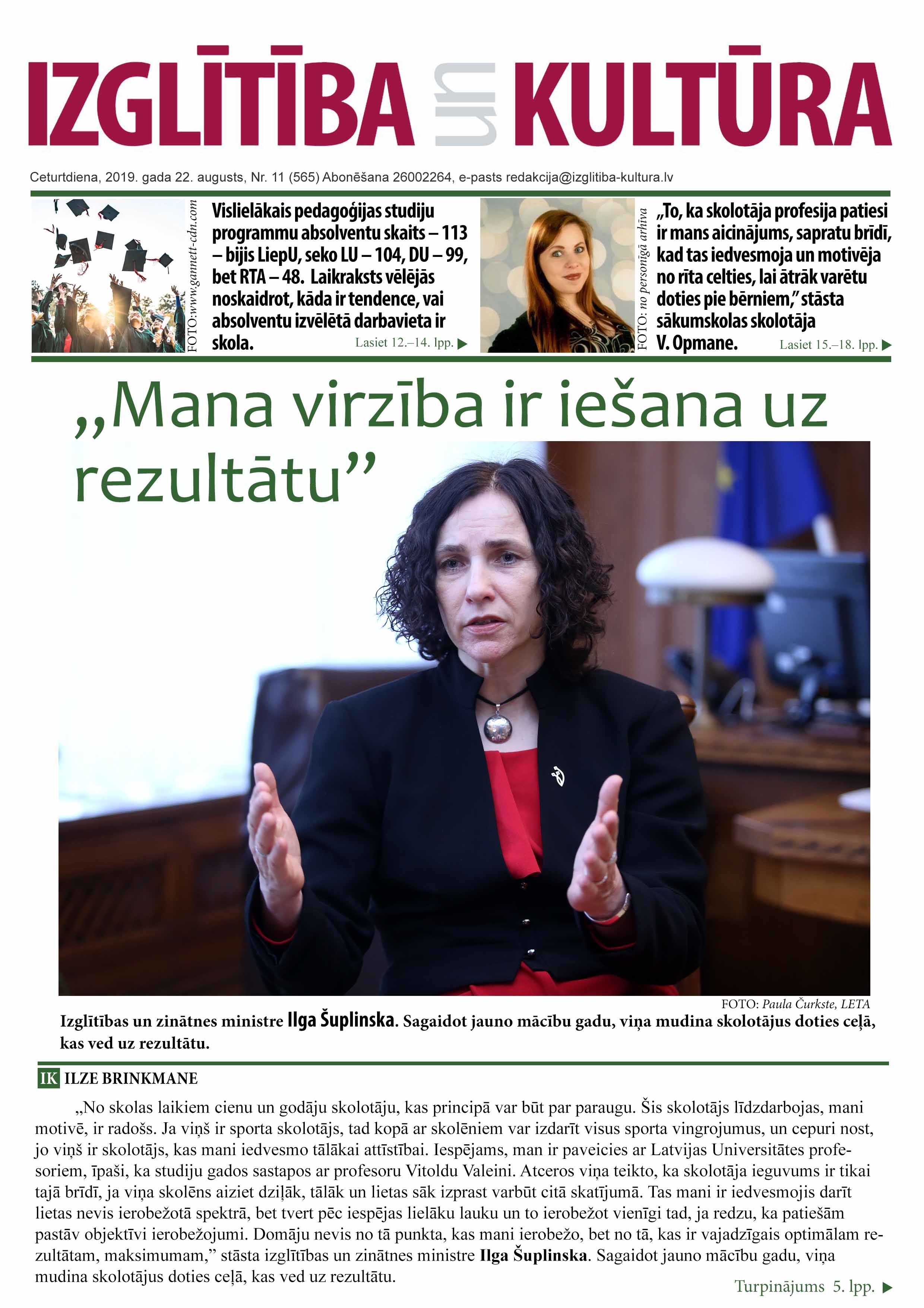 E-laikraksta IZGLĪTĪBA un KULTŪRA 22. augusta numurā lasiet: