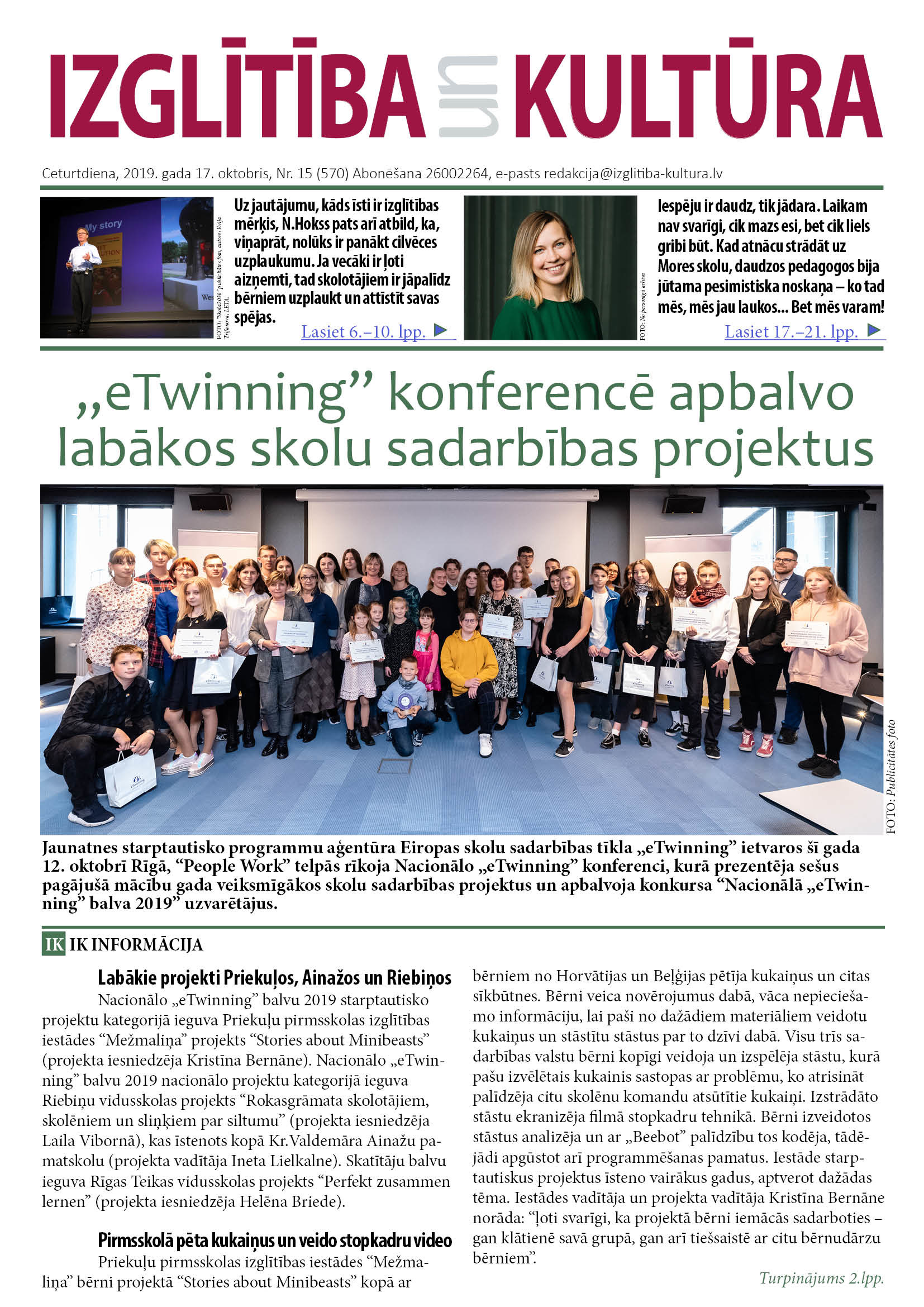 E-laikraksta IZGLĪTĪBA un KULTŪRA 17.oktobra numurā lasiet: