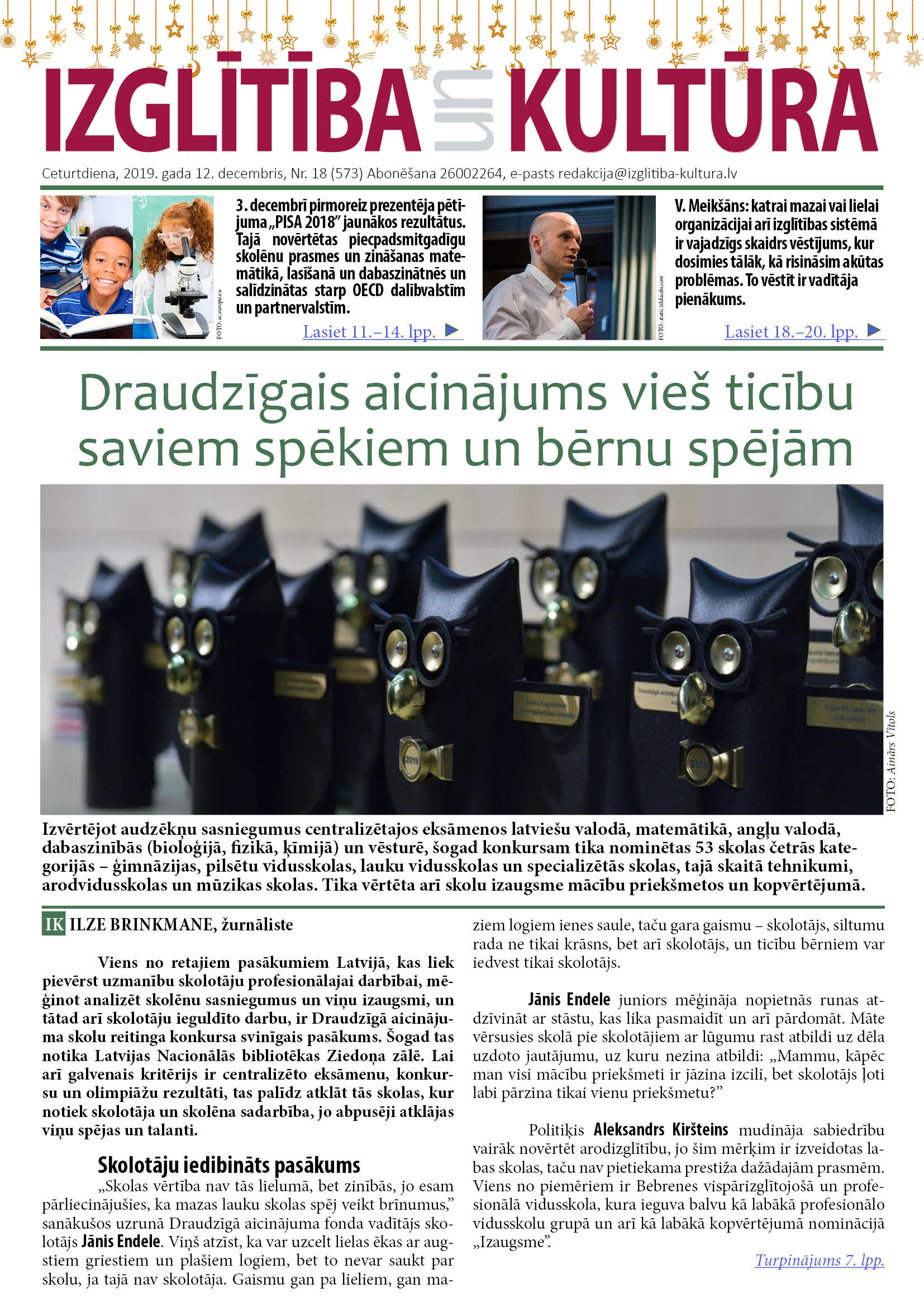 E-laikraksta IZGLĪTĪBA un KULTŪRA 12.decembra numurā lasiet: