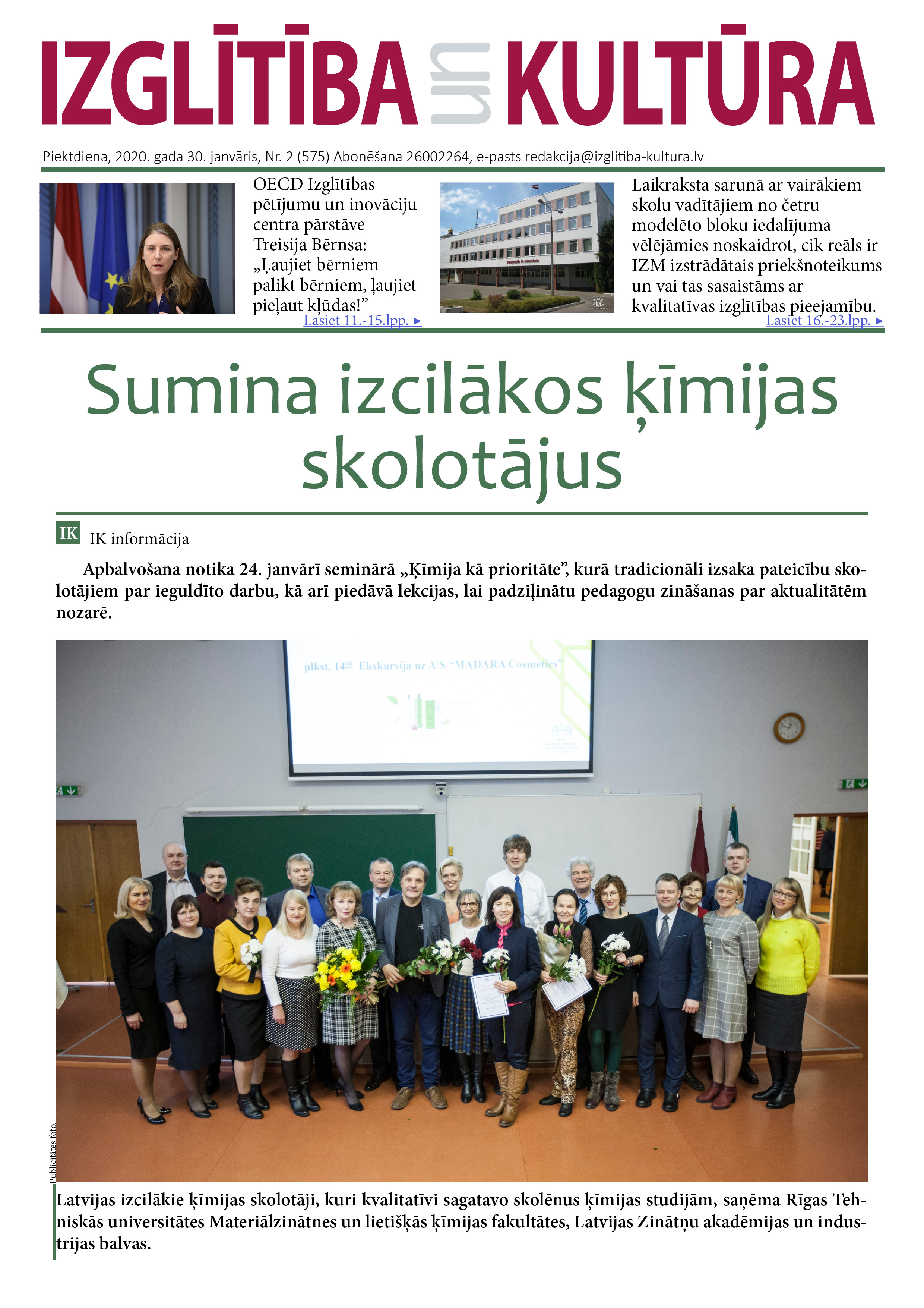 Laikraksta IZGLĪTĪBA un KULTŪRA 30. janvāra numurā lasiet: