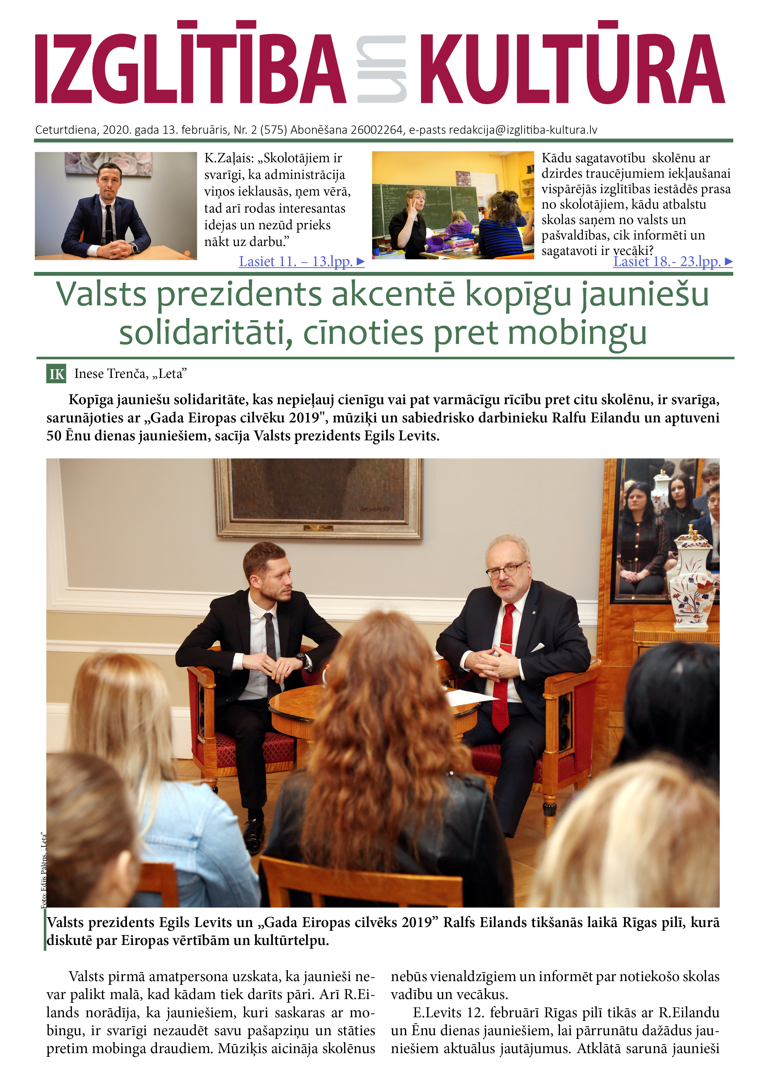 E-laikraksta IZGLĪTĪBA un KULTŪRA 13. februāra numurā lasiet:
