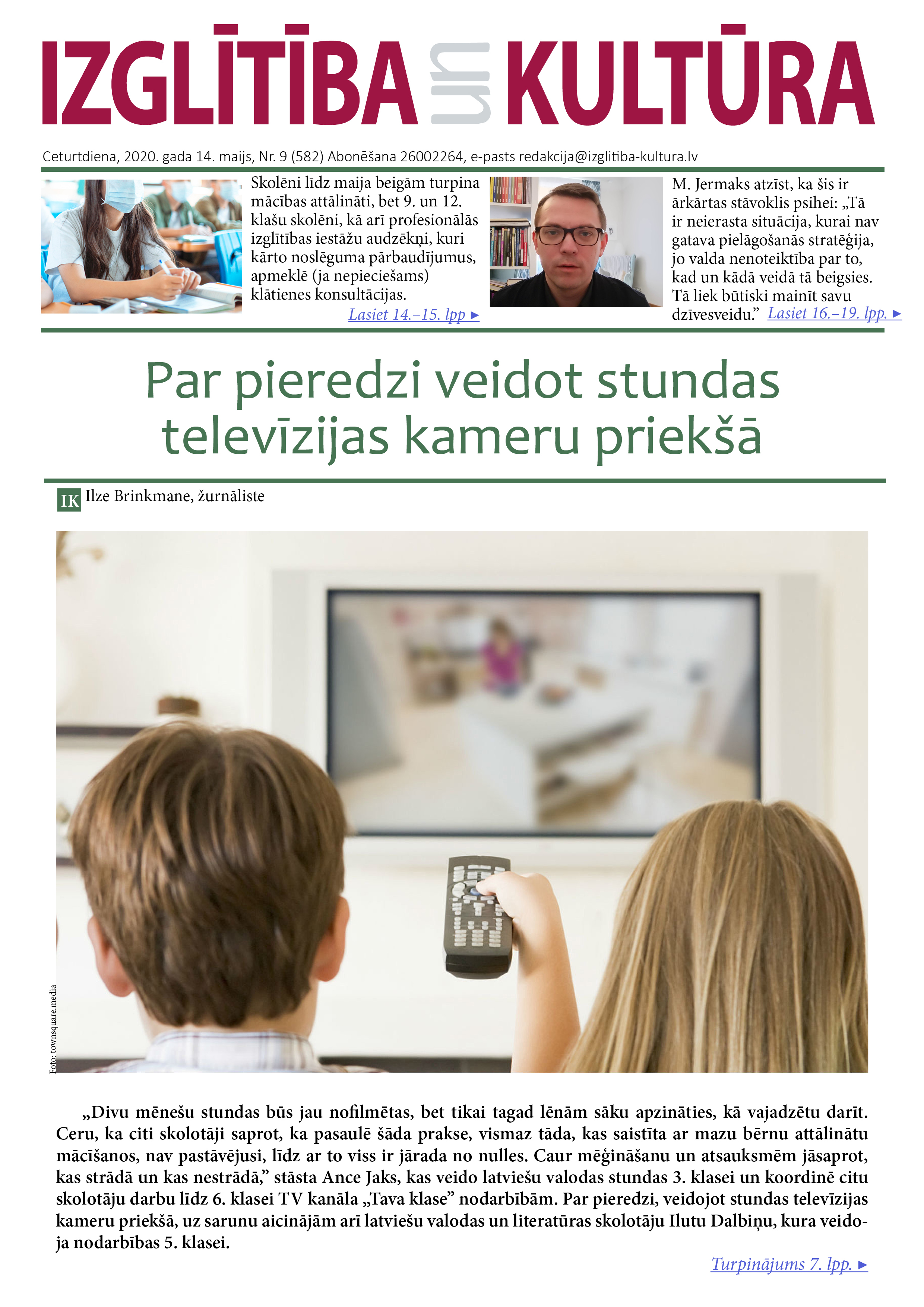 E-laikraksta IZGLĪTĪBA un KULTŪRA 14. maija numurā lasiet: