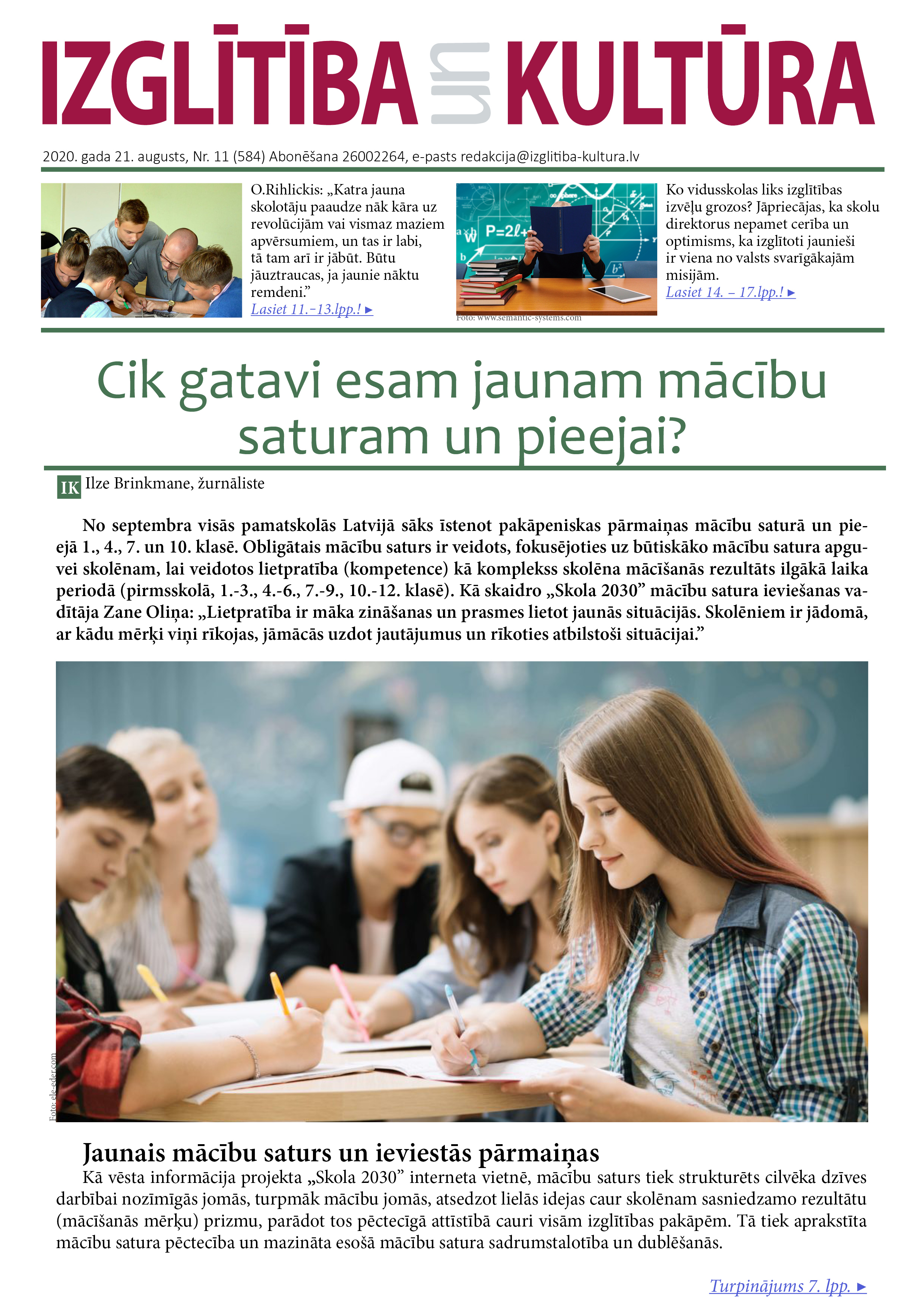 E-laikraksta IZGLĪTĪBA un KULTŪRA 21. augusta numurā lasiet: