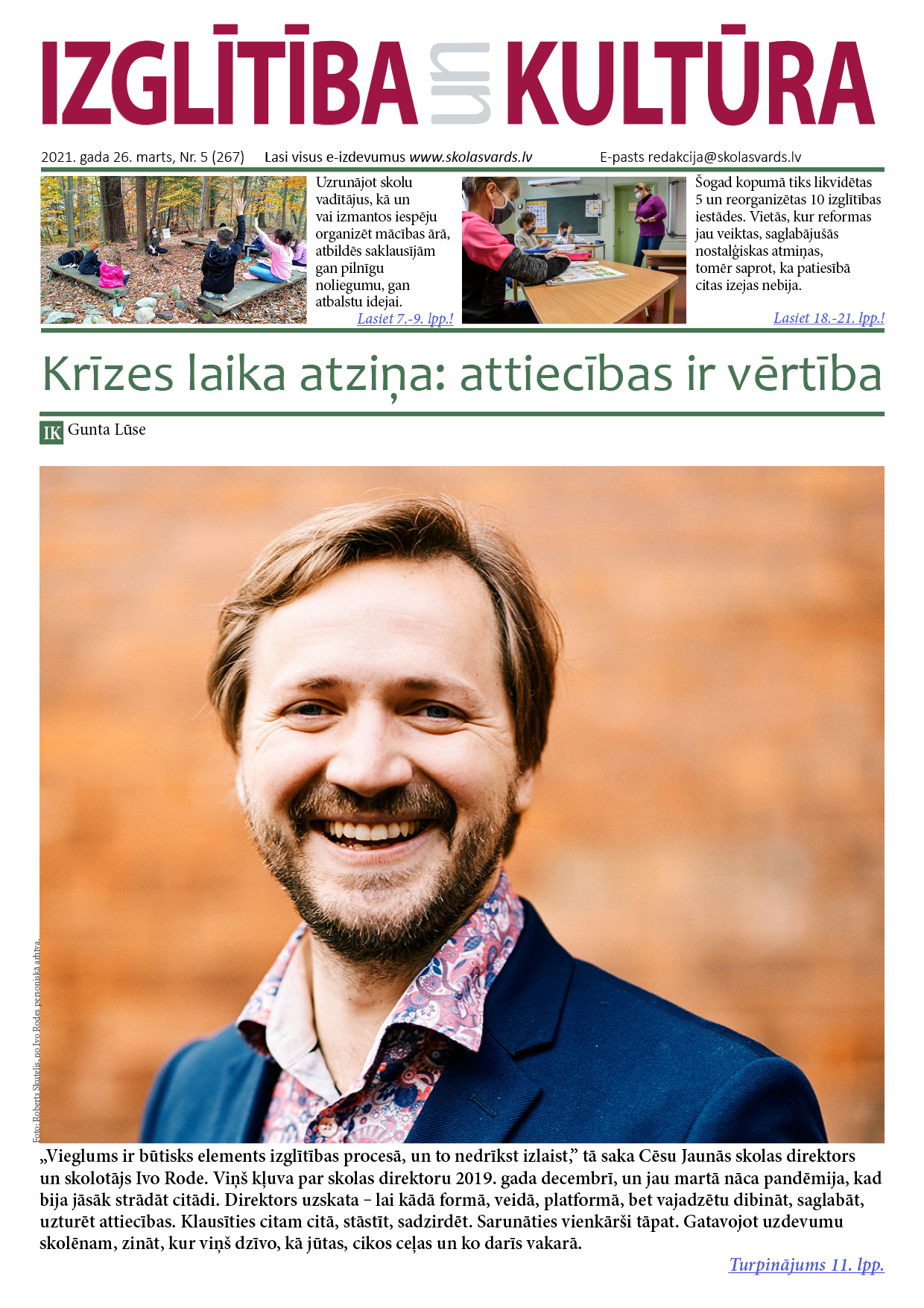 E-laikraksta IZGLĪTĪBA un KULTŪRA 26. marta numurā lasiet: