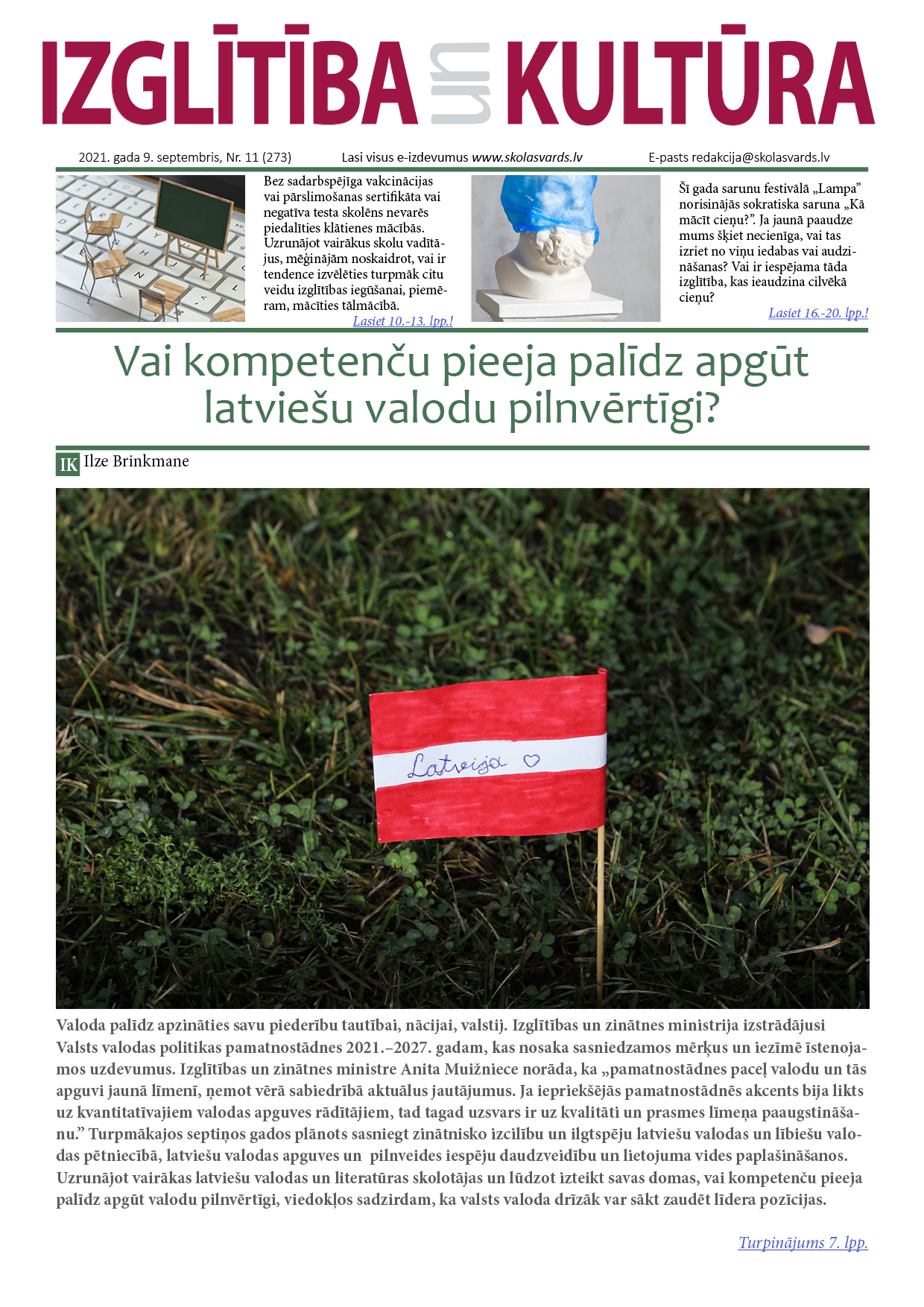 E-laikraksta IZGLĪTĪBA un KULTŪRA 9. septembra numurā lasiet: