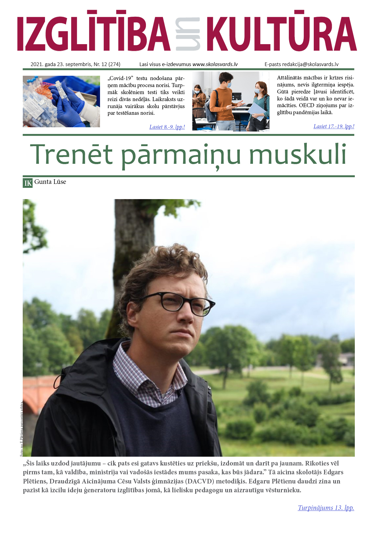 E-laikraksta IZGLĪTĪBA un KULTŪRA 23. septembra numurā lasiet: