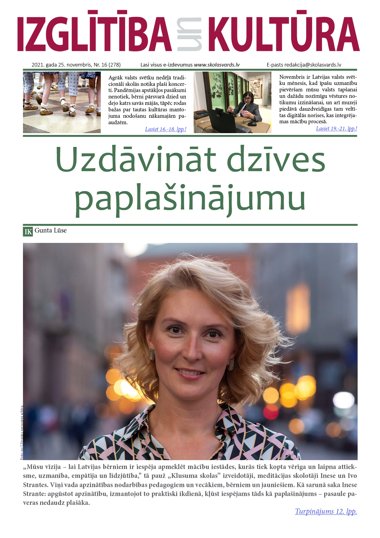 E-laikraksta IZGLĪTĪBA un KULTŪRA 25. novembra numurā lasiet: