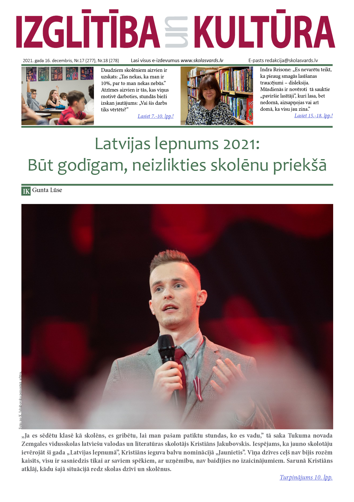E-laikrasta IZGLĪTĪBA un KULTŪRA 16.decembra numurā lasiet: