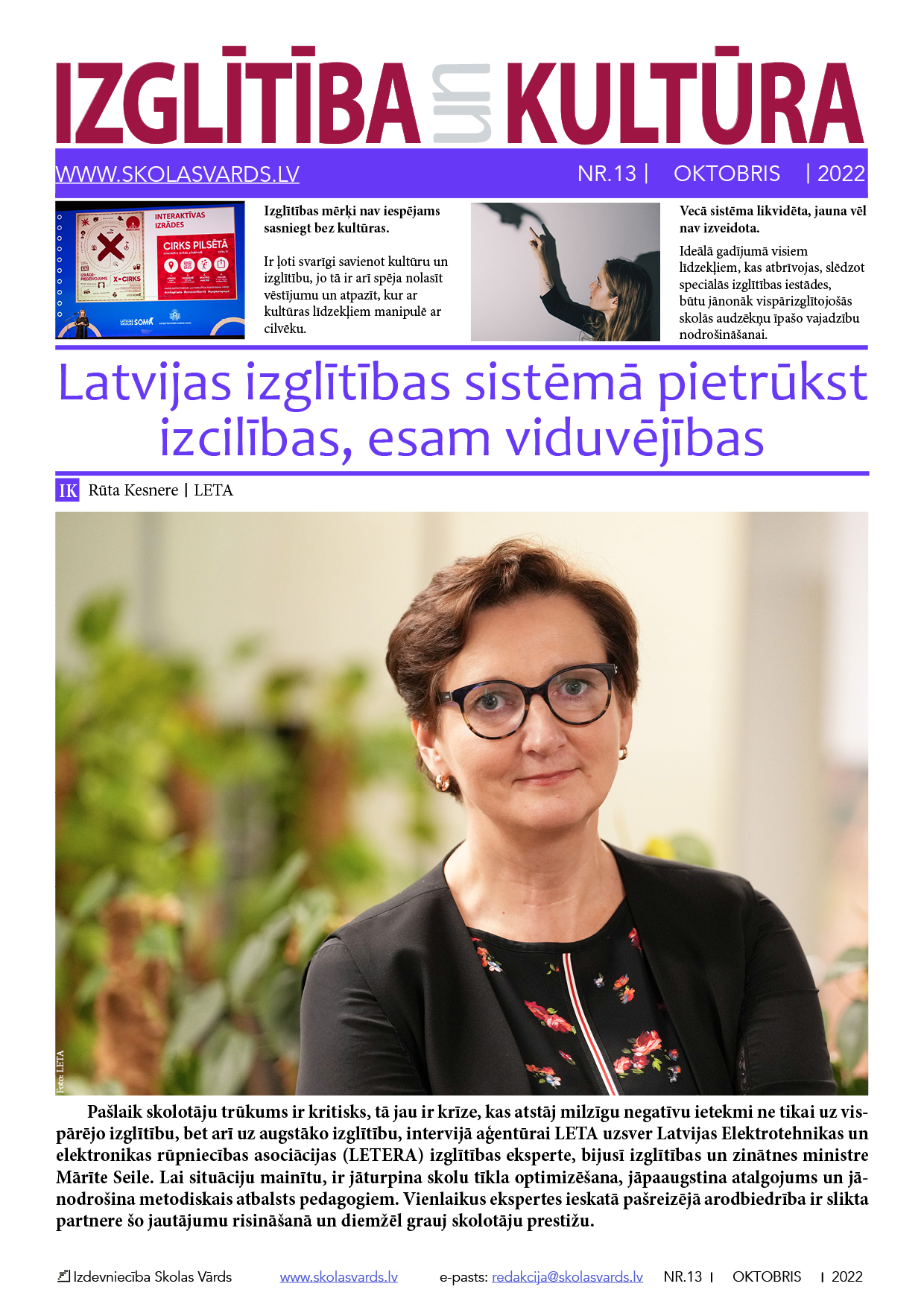 E-laikraksta IZGLĪTĪBA un KULTŪRA jaunajā numurā lasiet: