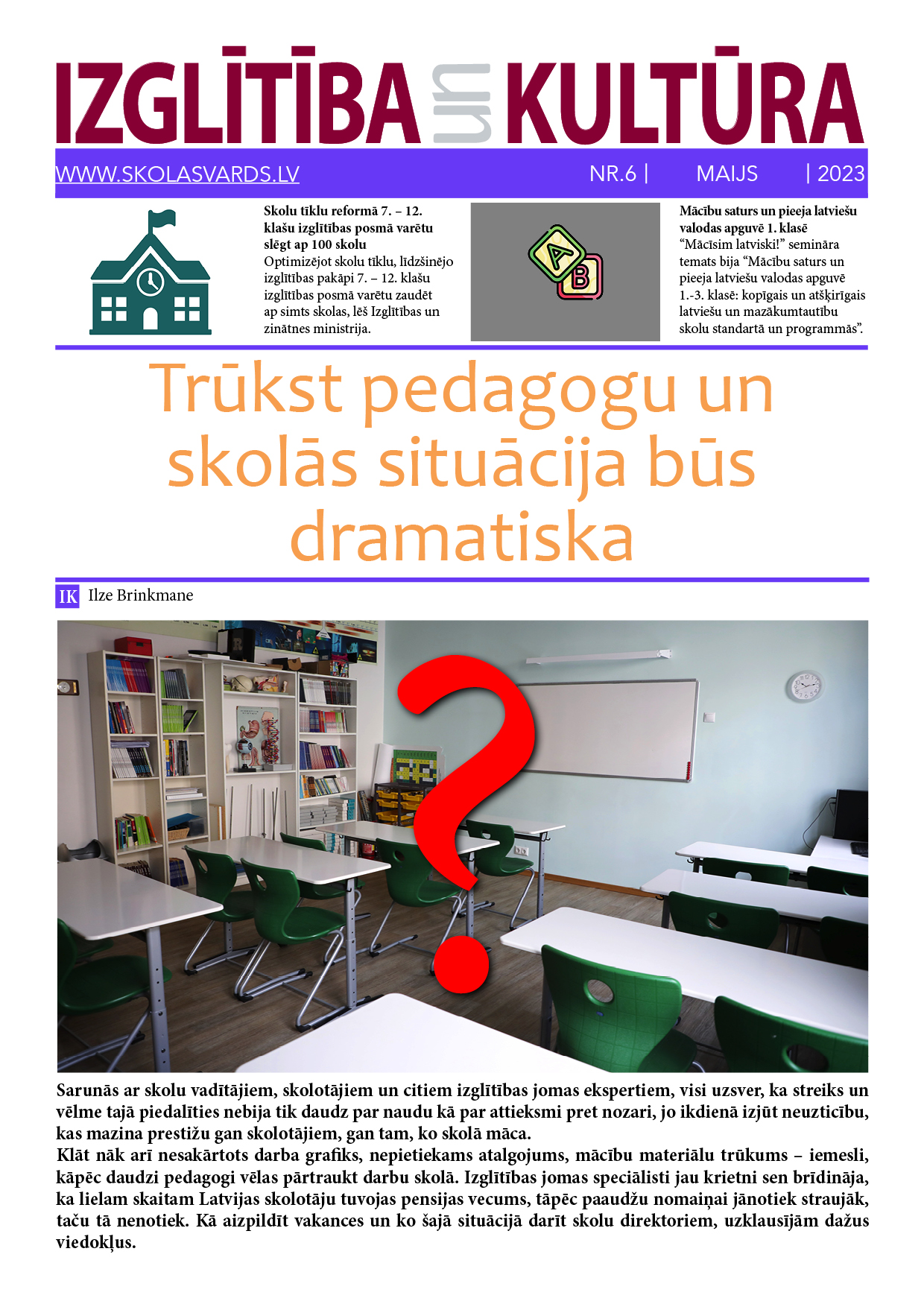 Laikraksta IZGLĪTĪBA un KULTŪRA jaunajā numurā lasiet: