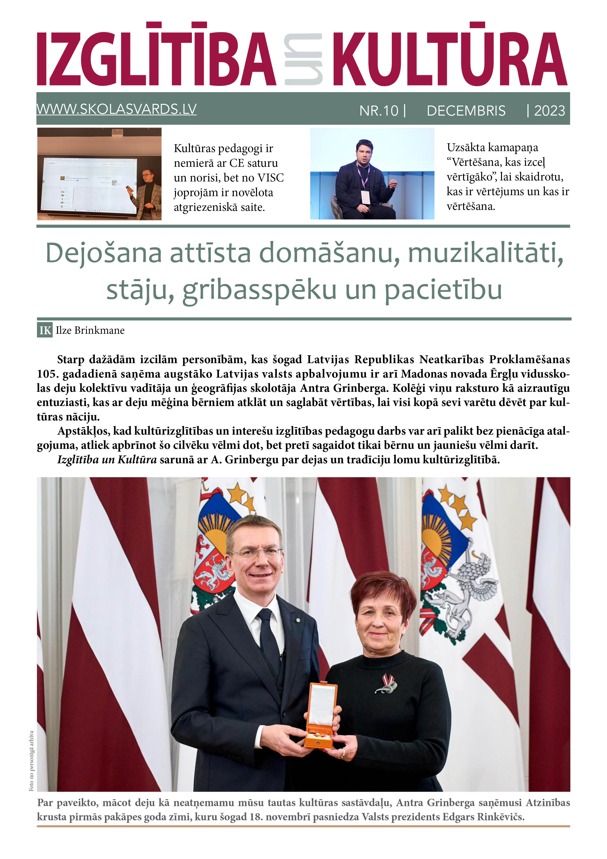 Laikraksta IZGLĪTĪBA un KULTŪRA jaunajā numurā lasiet: